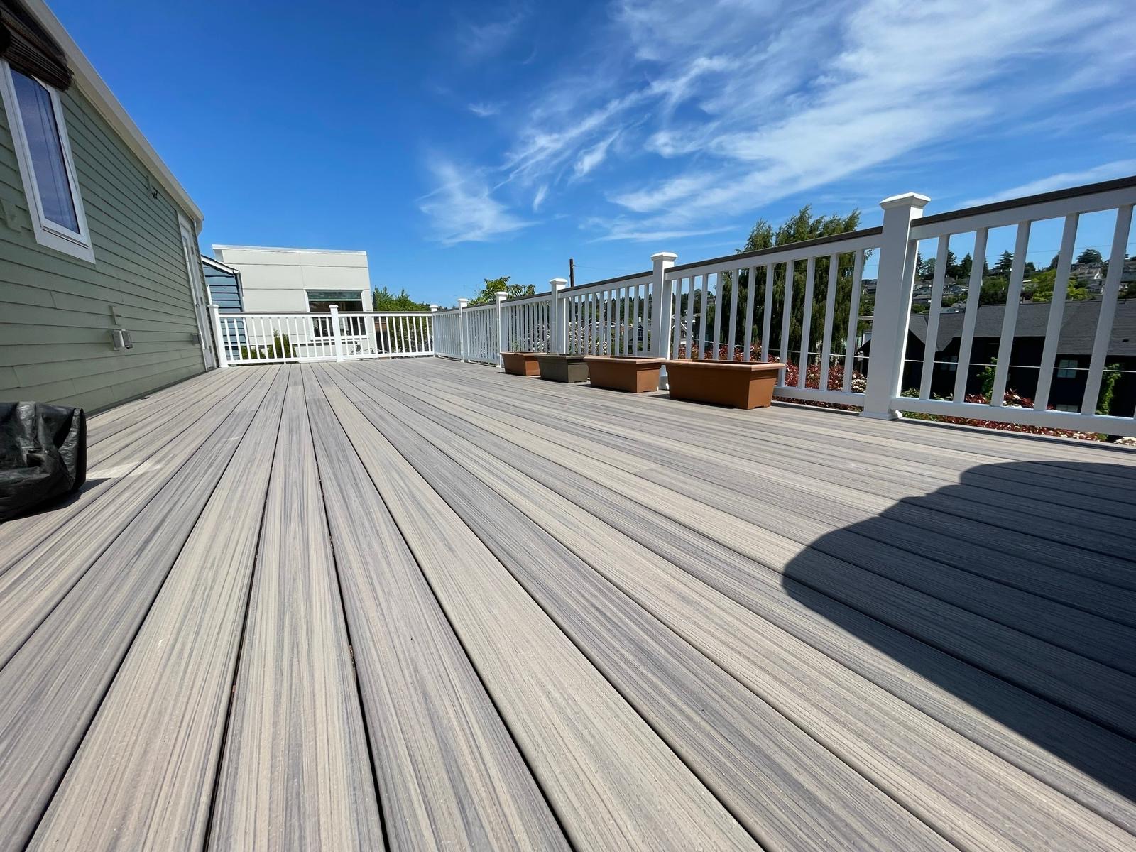 Once an old deck plagued by peeling red paint and worn boards, this space has been completely revitalized with fresh new decking tracks and stunning upgraded railings. The owners now love spending time on their beautiful, durable outdoor haven—perfect for relaxing, entertaining, and enjoying it in style and comfort.